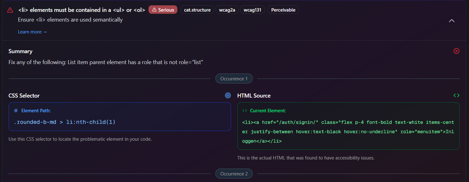 - Providing the Fix: Offering clear, developer-focused advice on exactly how to apply the missing and attributes.
